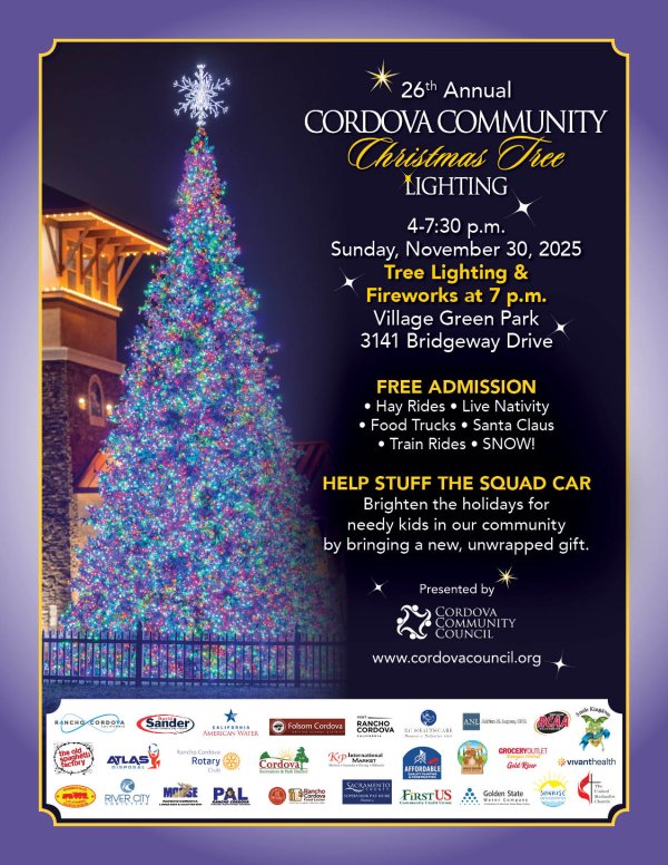 The annual lighting of our Cordova Community Christmas Tree is a public event inspiring community unity, showcasing Rancho Cordova community life, promoting local business and providing a community branding experience.